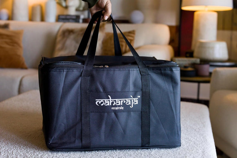 Premium Portable Travel Concert Harmonium, Maharaja Musicals, Small, 2.5 Octaves Saptak, Multi-Fold Bellow, 18/12/10 Inch, Golden Handle & Aces, Bag, Kirtan Yoga Companion